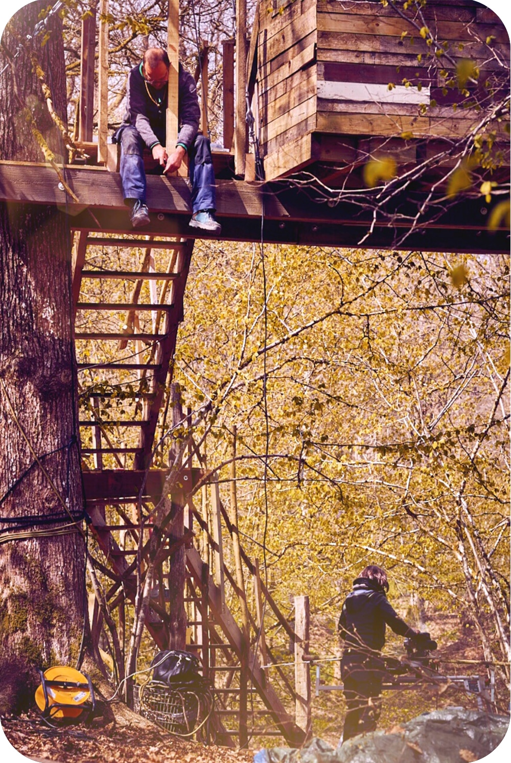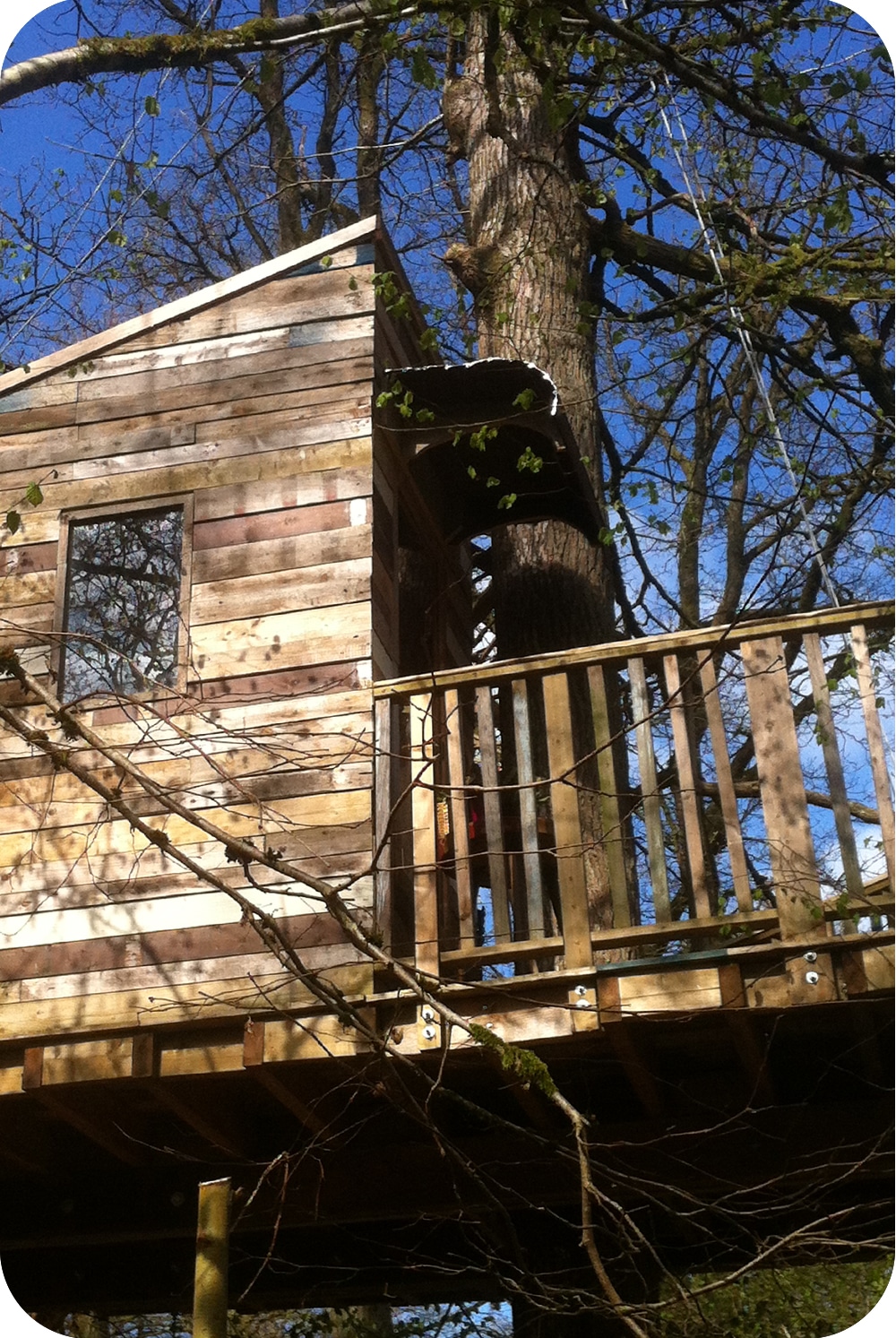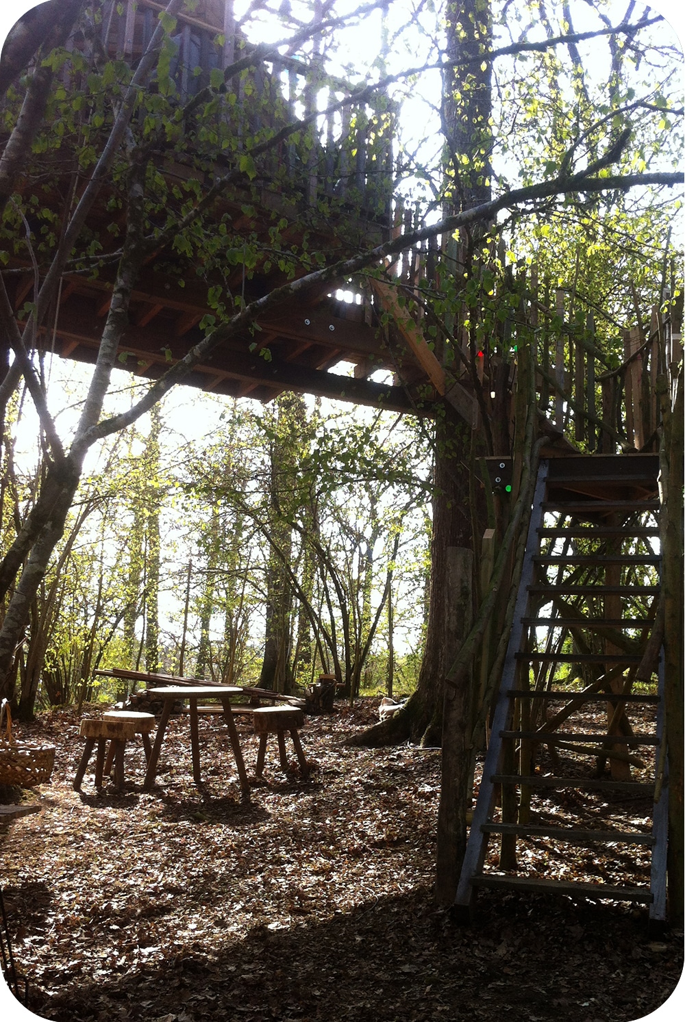 Deze boomhut werd speciaal gebouwd voor het festival Passion Robinson in het provinciaal domein van Chevetogne in Wallonië.