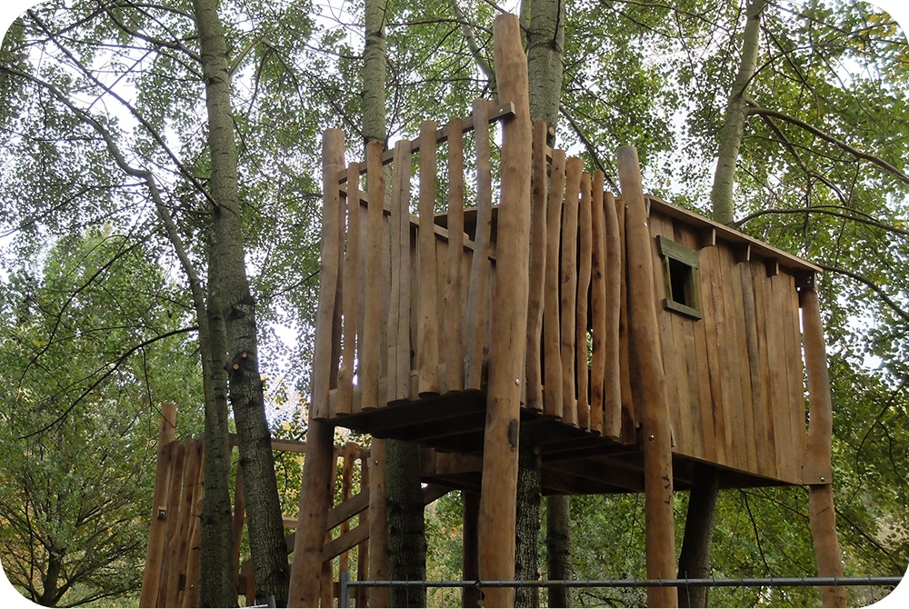Boomhutje in het provinciaal domein te Harelbeke. Speelpretverzekerd in een leuke Robin Hood setting!